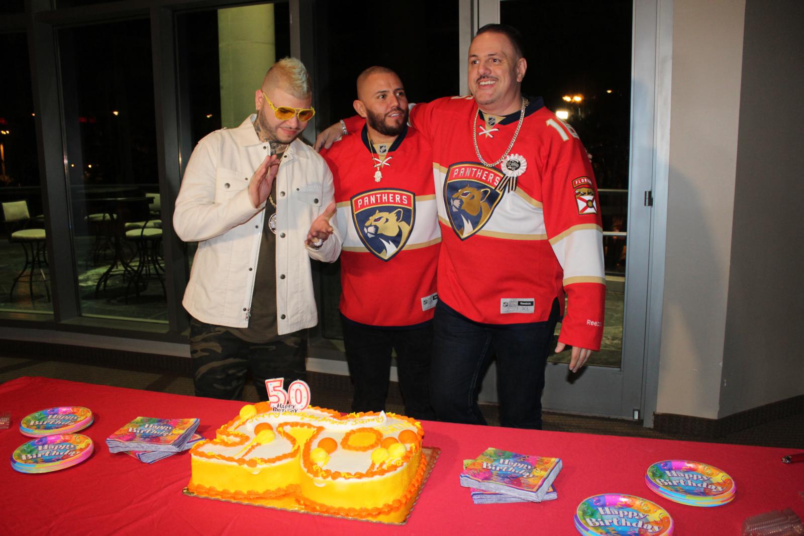 Nuestro querido Jammin Johnny celebro su cumpleaños en el juego de Los Florida Panthers en el BB&T Center este martes 31, contó con la presencia de sus compañeros y una presentación especial de su gran amigo y artista urbano “Farruko”.
